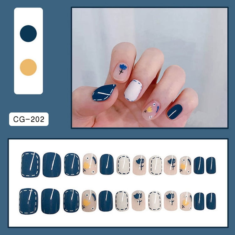 Flower Design Press On Nails Short Cute Fake Nails Acrylic Nails Full Cover Artificial Nails For Women And Girls 24pcs Walmart Com